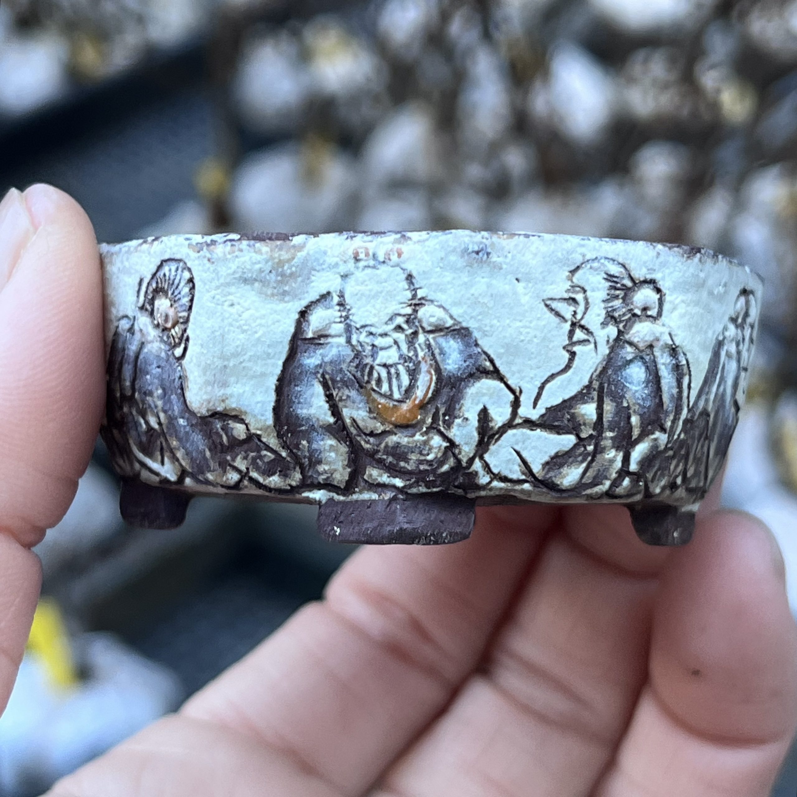 Born in December of the 37th year of the Meiji era (1904), in Seto, Aichi Prefecture. After training under a kimono painter, he made a living as a ceramic underglaze painter for tableware. He also practiced tea ceremony, painting and haiku. He was commissioned to paint bonsai pots by Tosui Uematsu. He was creating designs such as dragons, carvings, Southern-style painting, and elderly figures.